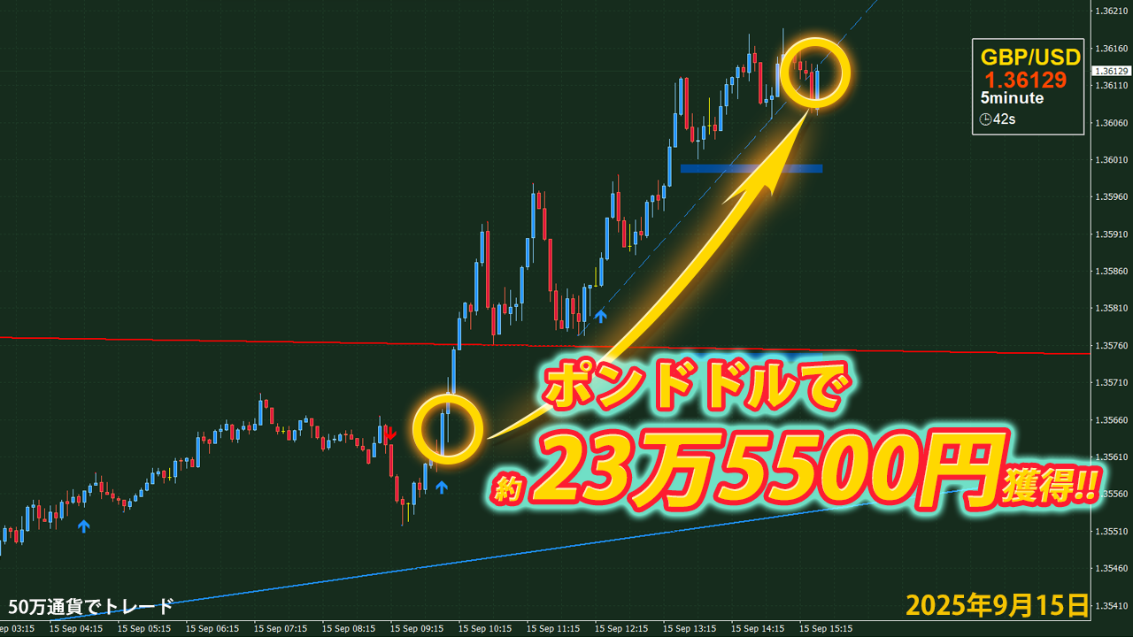 【2025年9月15日】ポンドドル綺麗に伸びました!