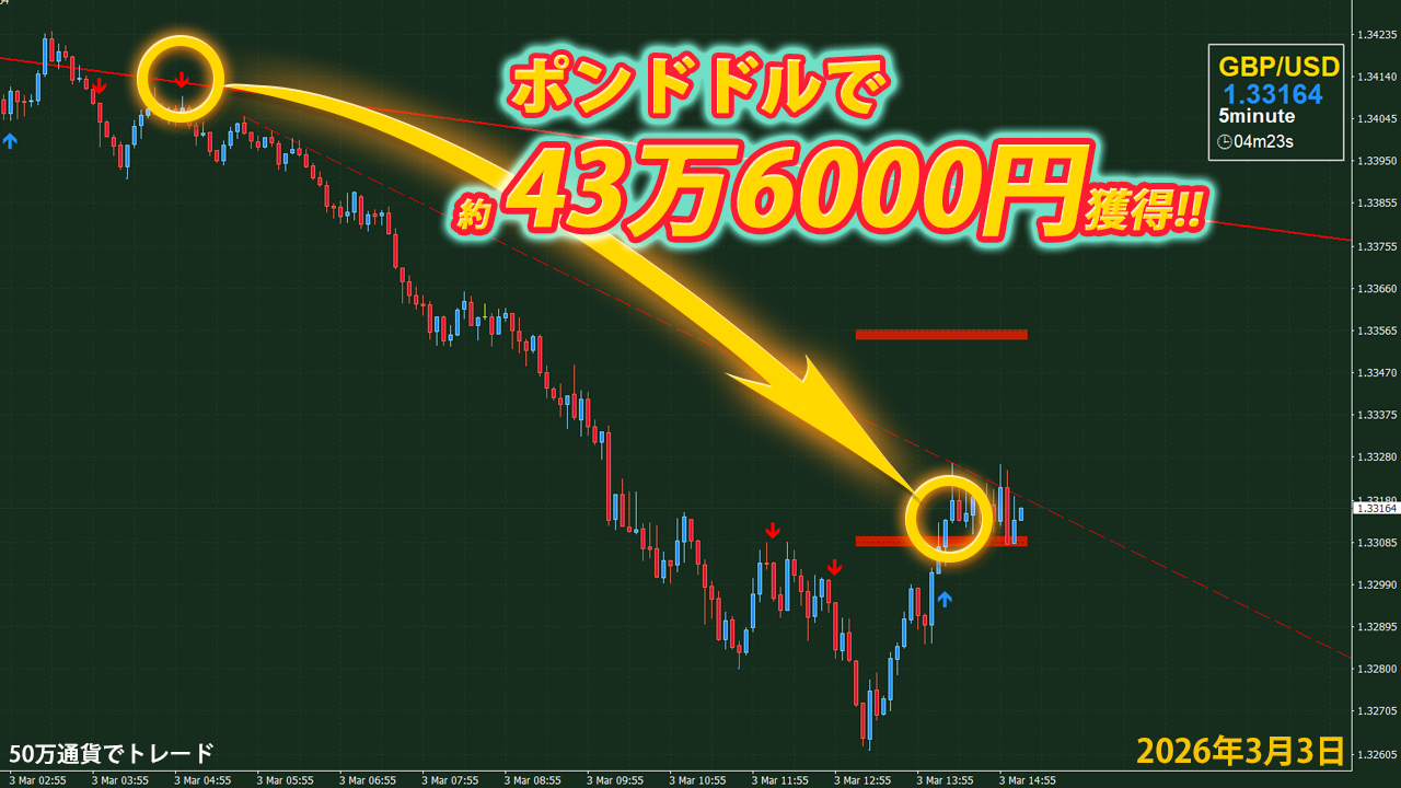 50万通貨でトレードすると 43万6000円獲得!!