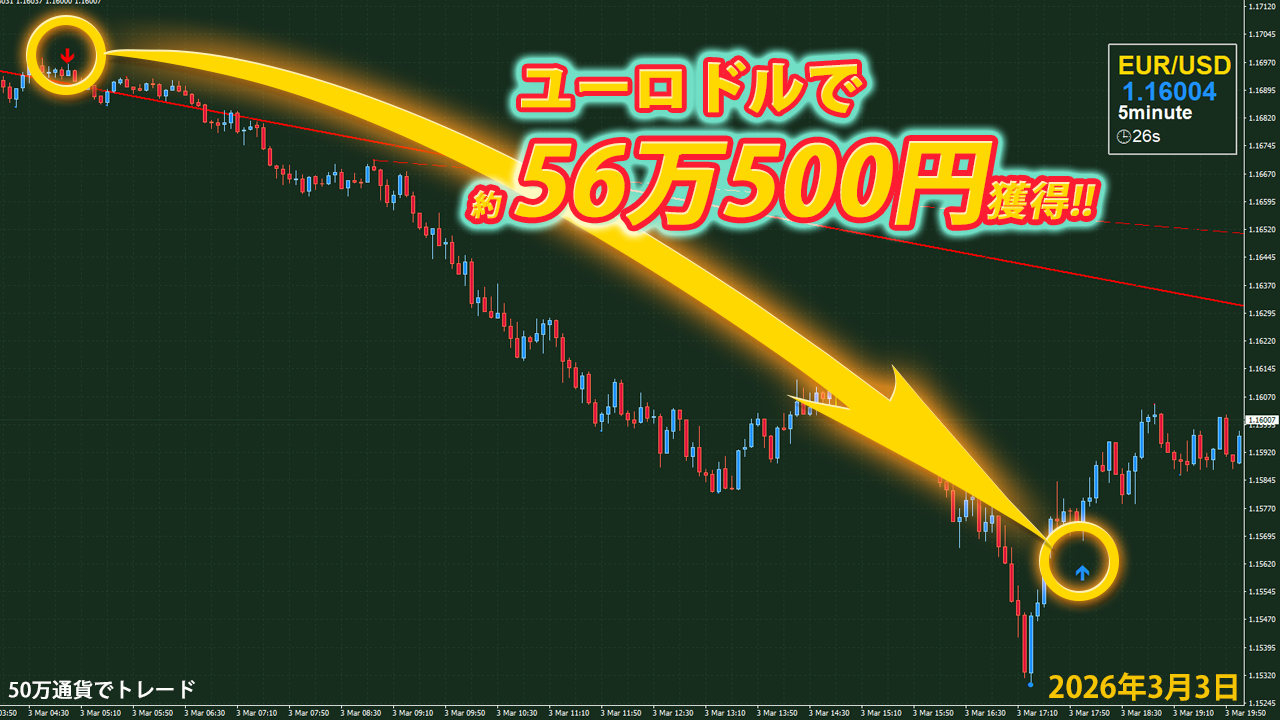 50万通貨でトレードすると 56万500円獲得!!